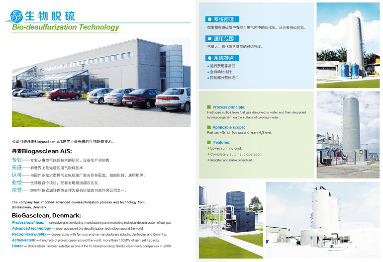 目前污水、垃圾處理過程中,越來越多的工程項目選用厭氧處理工藝,沼氣作為一種衍生產(chǎn)物,漸漸被我們所熟知并利用。但從厭氧罐中出來的沼氣含有較高濃度的H2S及其它一些雜質(zhì),如不對沼氣進行脫硫、凈化處理,則會對沼氣運送管道、存儲設(shè)備及后續(xù)運用設(shè)備發(fā)生腐蝕,削減運用年限并形成安全危險。所以,通常是先通過脫硫凈化處理后再利用。